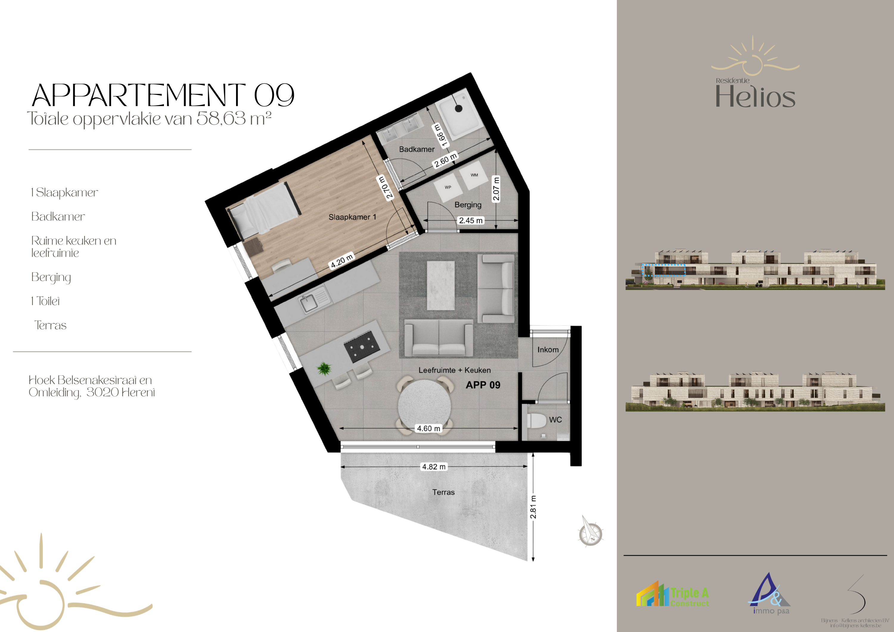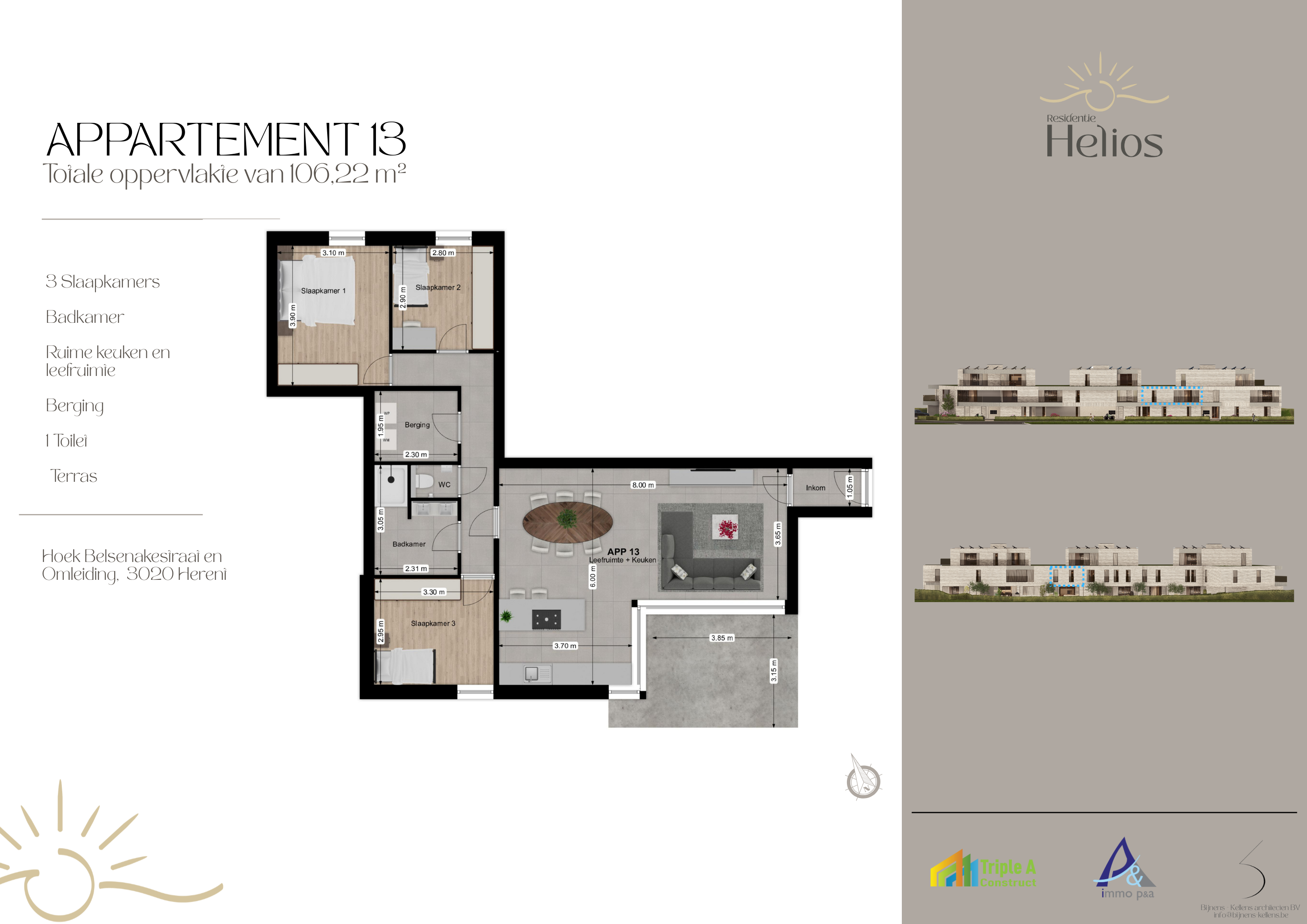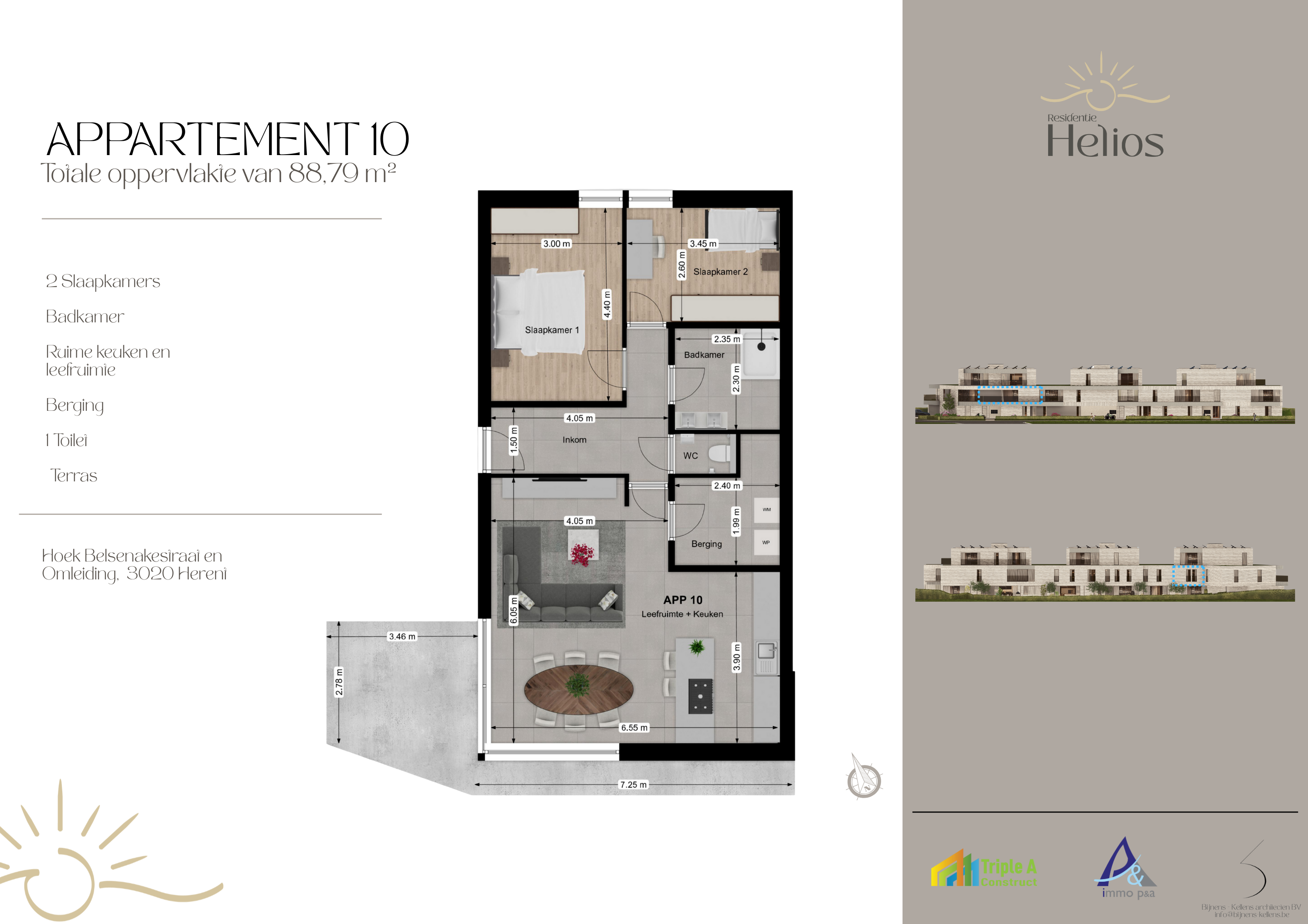 Residentie Helios is ideaal gelegen in Herent, met uitstekende verbindingen naar Leuven en Brussel. Winkels, scholen en openbaar vervoer bevinden zich op korte afstand, waardoor het project perfect bereikbaar is.