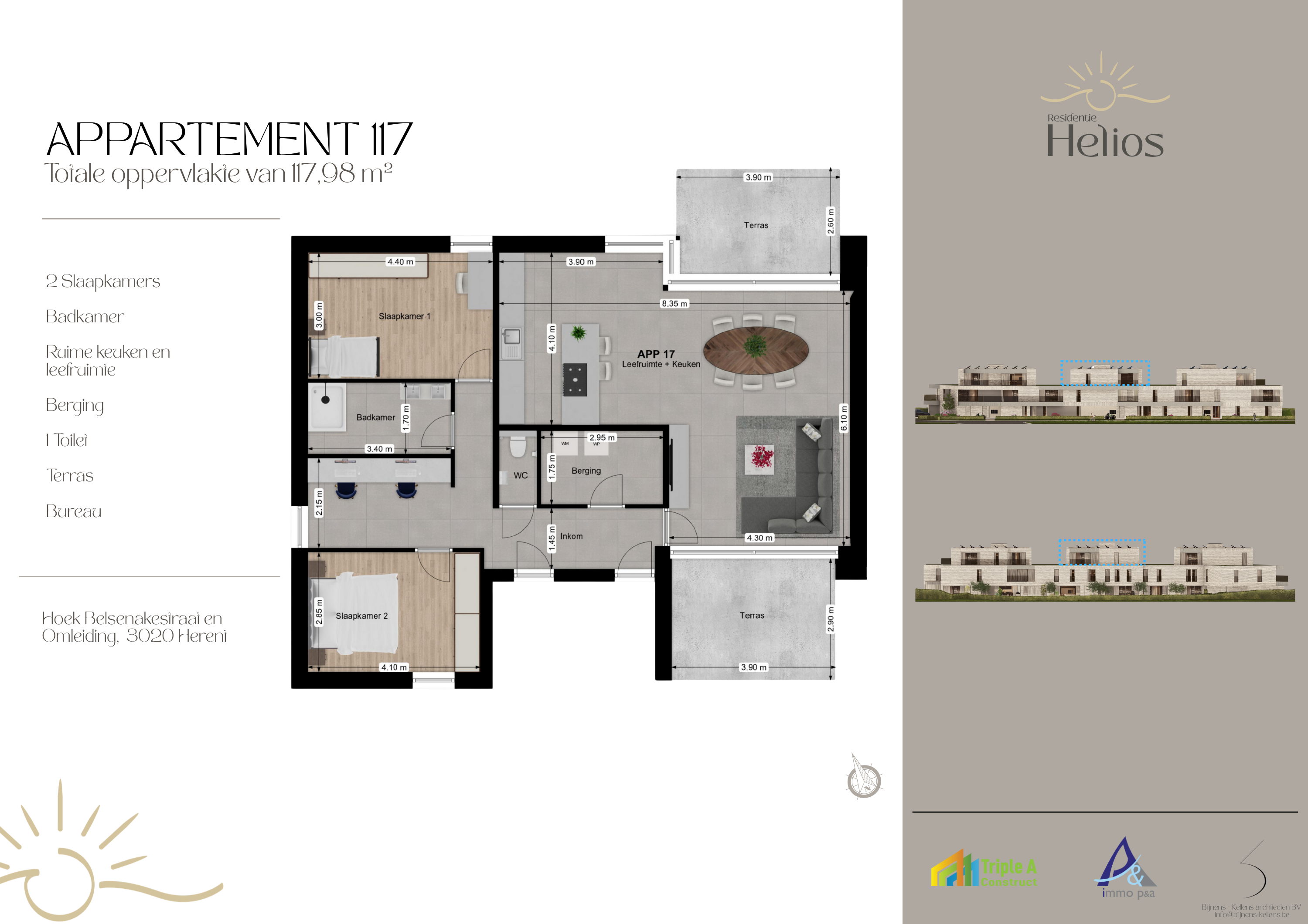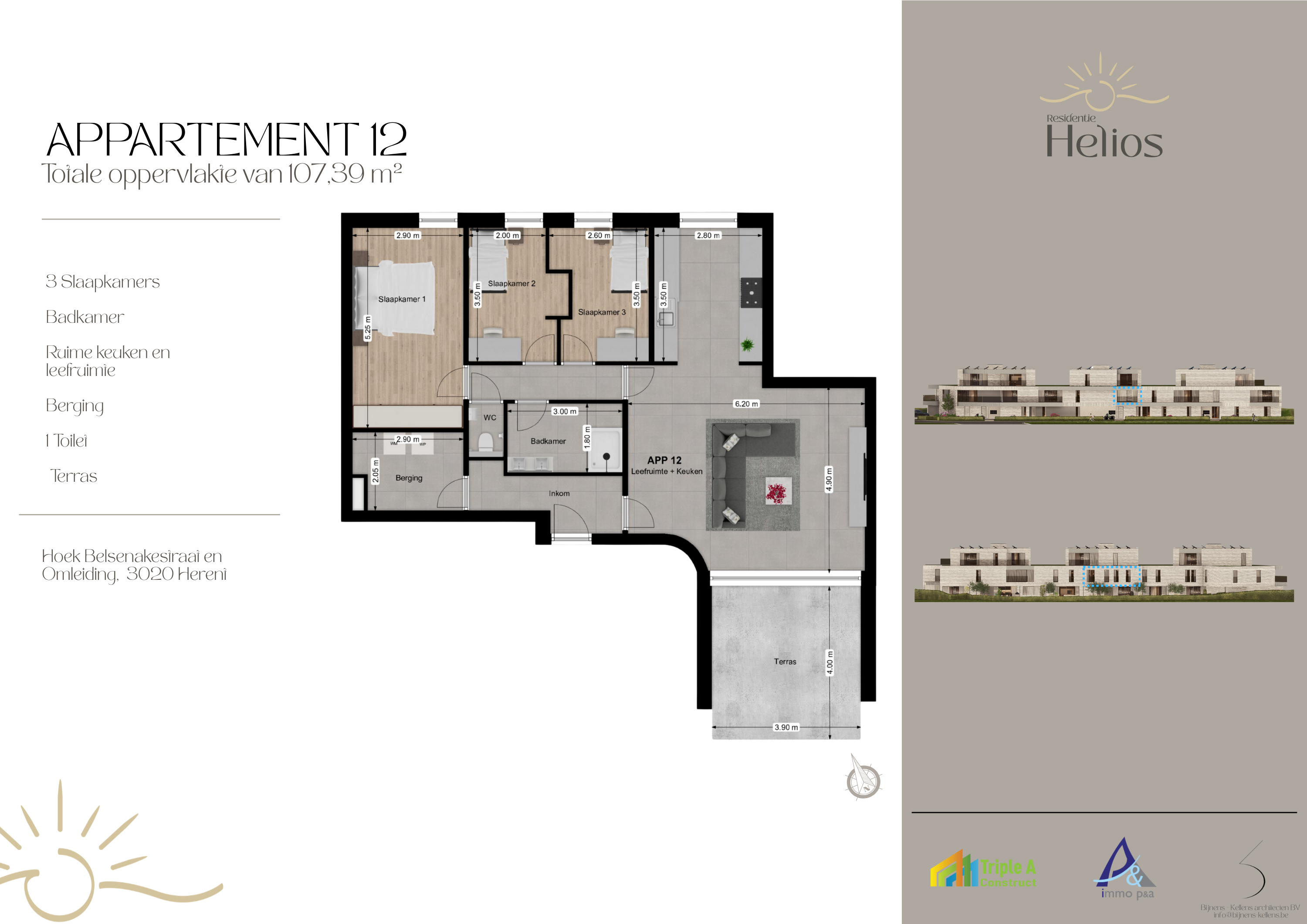 Residentie Helios is een exclusief nieuwbouwproject gelegen aan de Omleiding 101-105 in Herent. Het project bestaat uit 18 moderne appartementen, variërend van 1- tot 3-slaapkamerindelingen, met oppervlakten tussen 70 en 120 m².